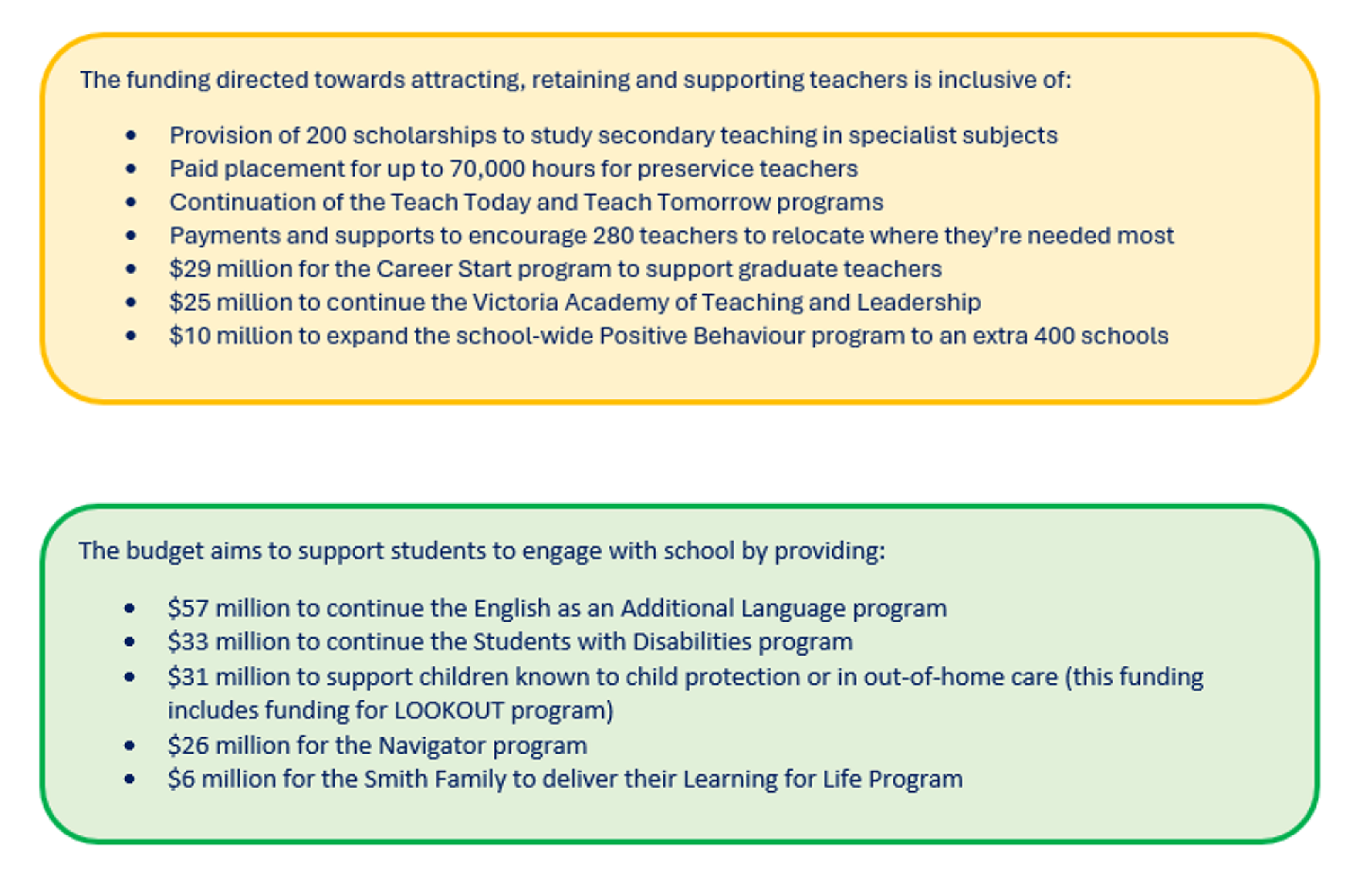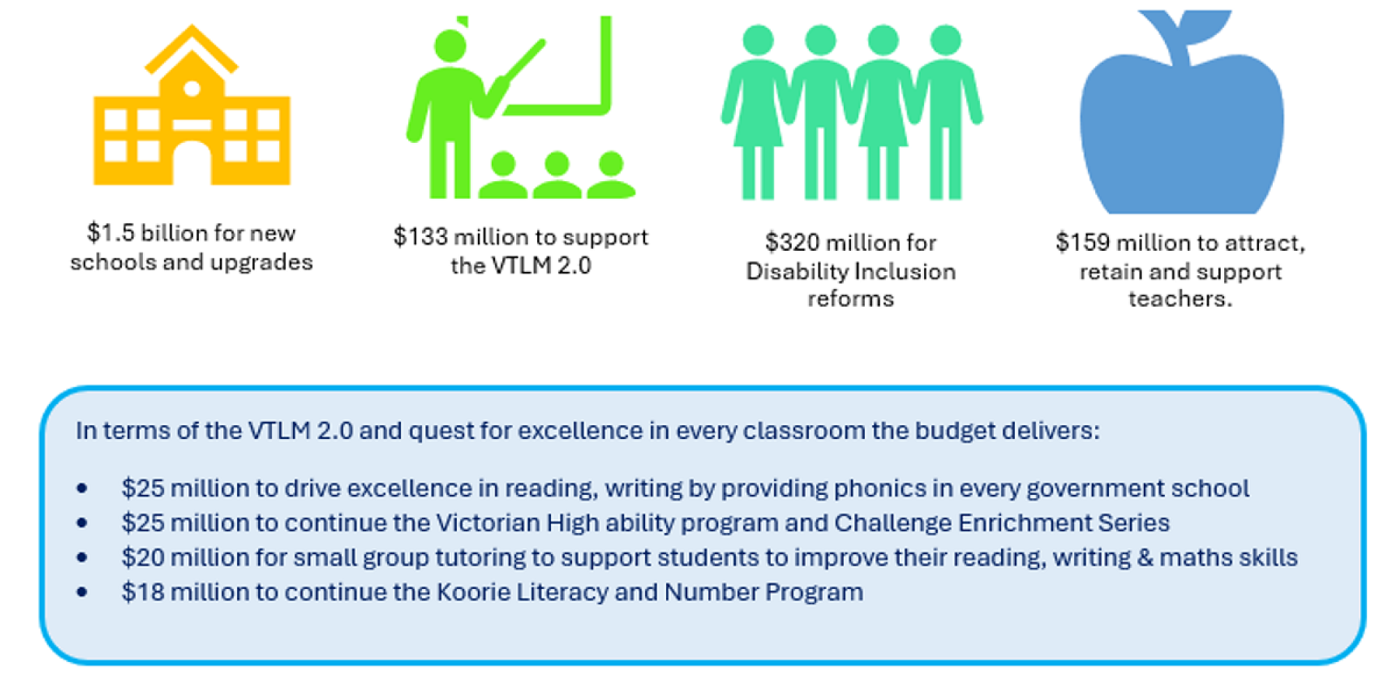 Other key investment areas for education include: